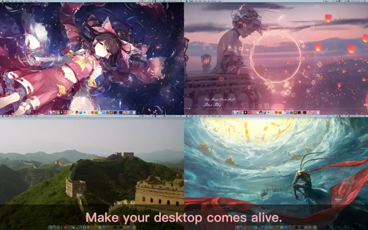 Dynamic Wallpaper是一款Mac操作系统的壁纸应用程序,它可以将用户的桌面壁纸设置为动态的,而不是静态的。它提供了多个预设的动态壁纸,包括天空、海洋、火焰、星空等。此外,用户还可以使用自己的视频或动态图像作为动态壁纸,以获得更加个性化的体验。