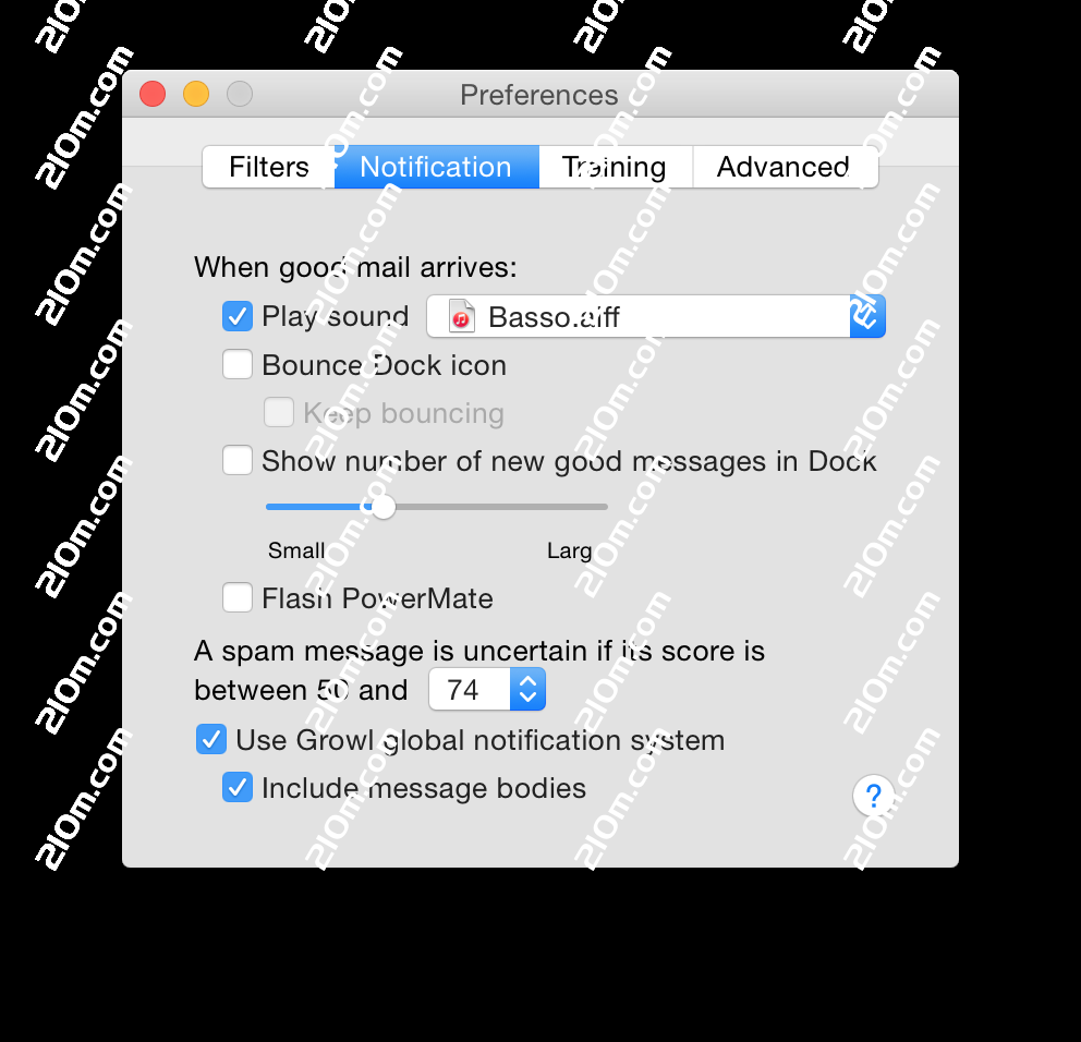 - 在您的电子邮件客户端中关闭新邮件通知,并让SpamSieve 仅在您收到新的非垃圾邮件时通知您。