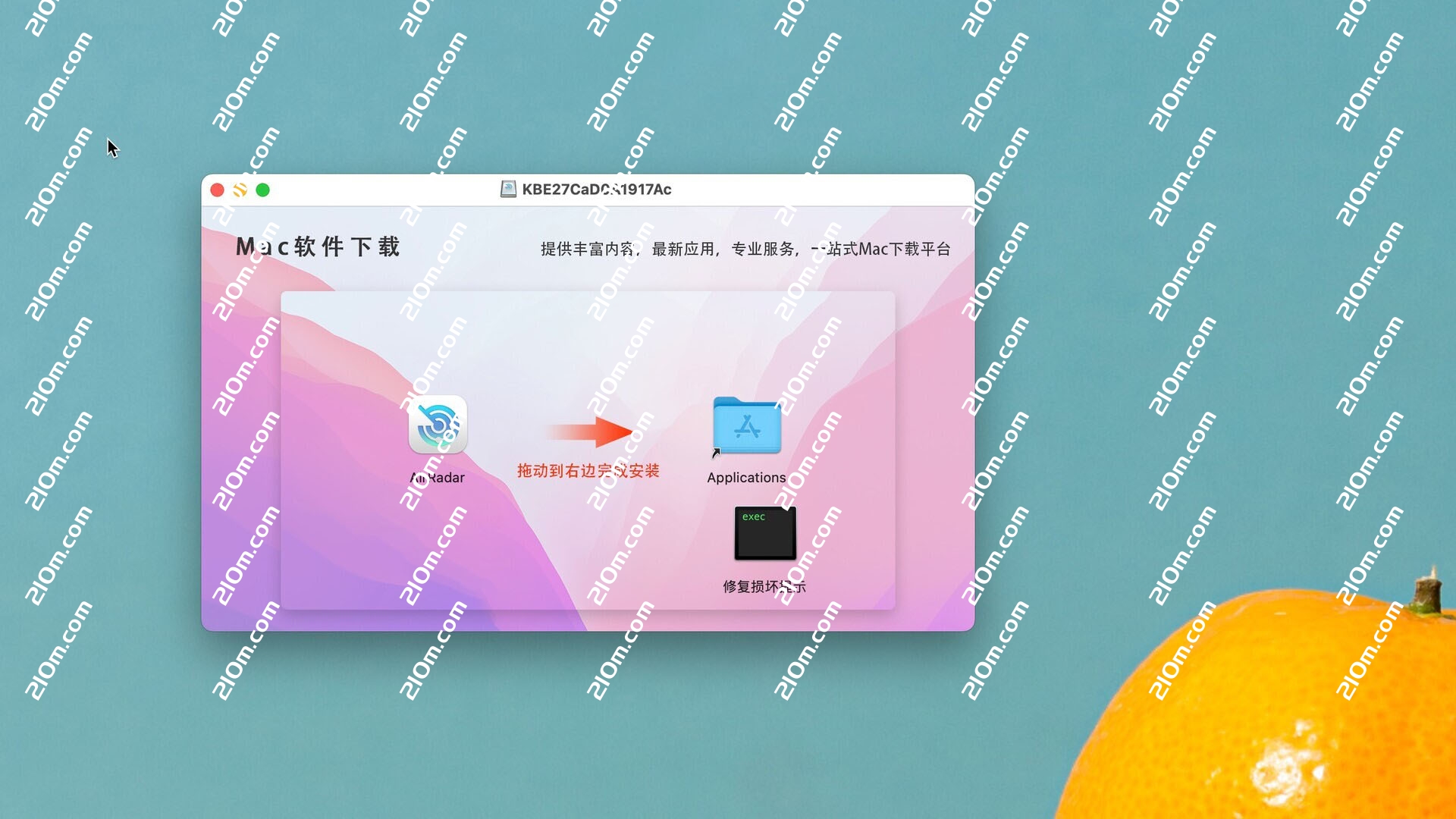 AirRadar mac破解版下载完成后打开,拖动左侧的软件到右侧应用程序中即可