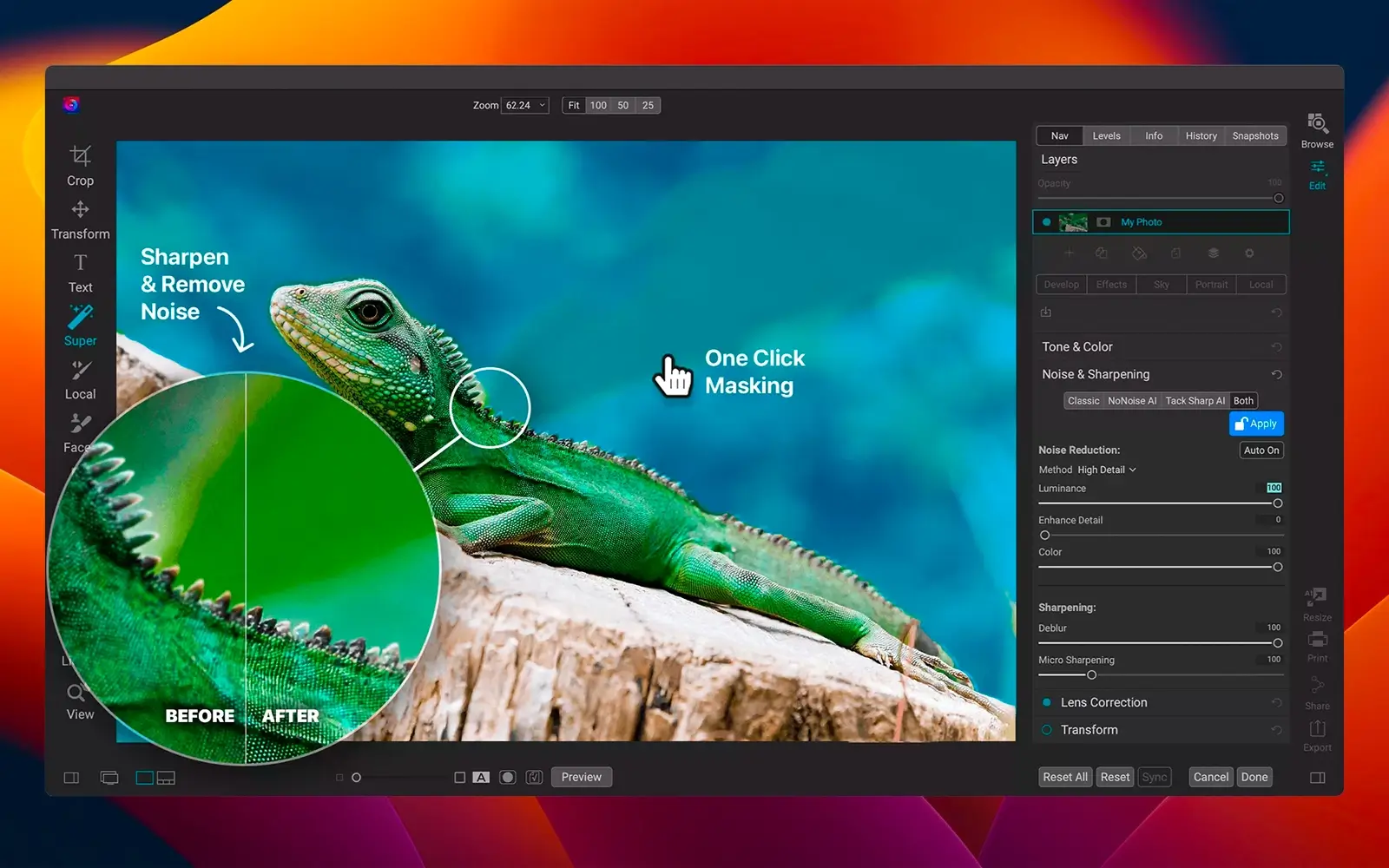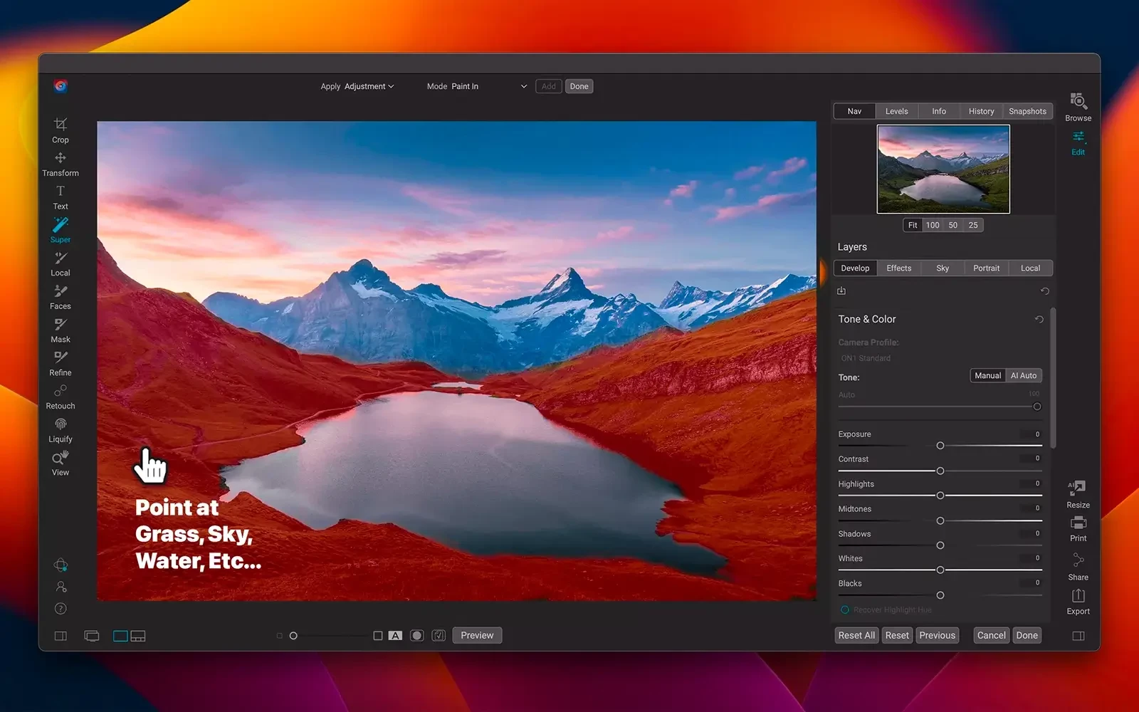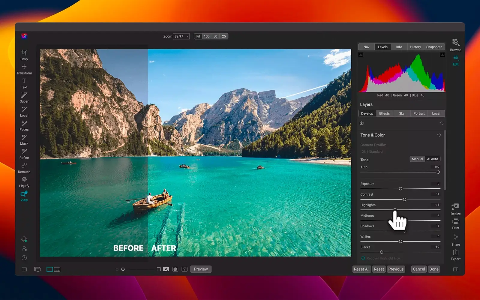 此版本对蒙版、效果模块和照片放大功能进行了强大的更新,使其成为功能最强大的 Lightroom 替代品之一。凭借全新的超分辨率 AI 模型、完全重新设计的蒙版体验和新一代创意滤镜,您将获得质量、速度和控制的完美结合——无论您是进行精确选择、探索新鲜的创意外观以使您的愿景栩栩如生,还是创建令人惊叹的照片放大图。