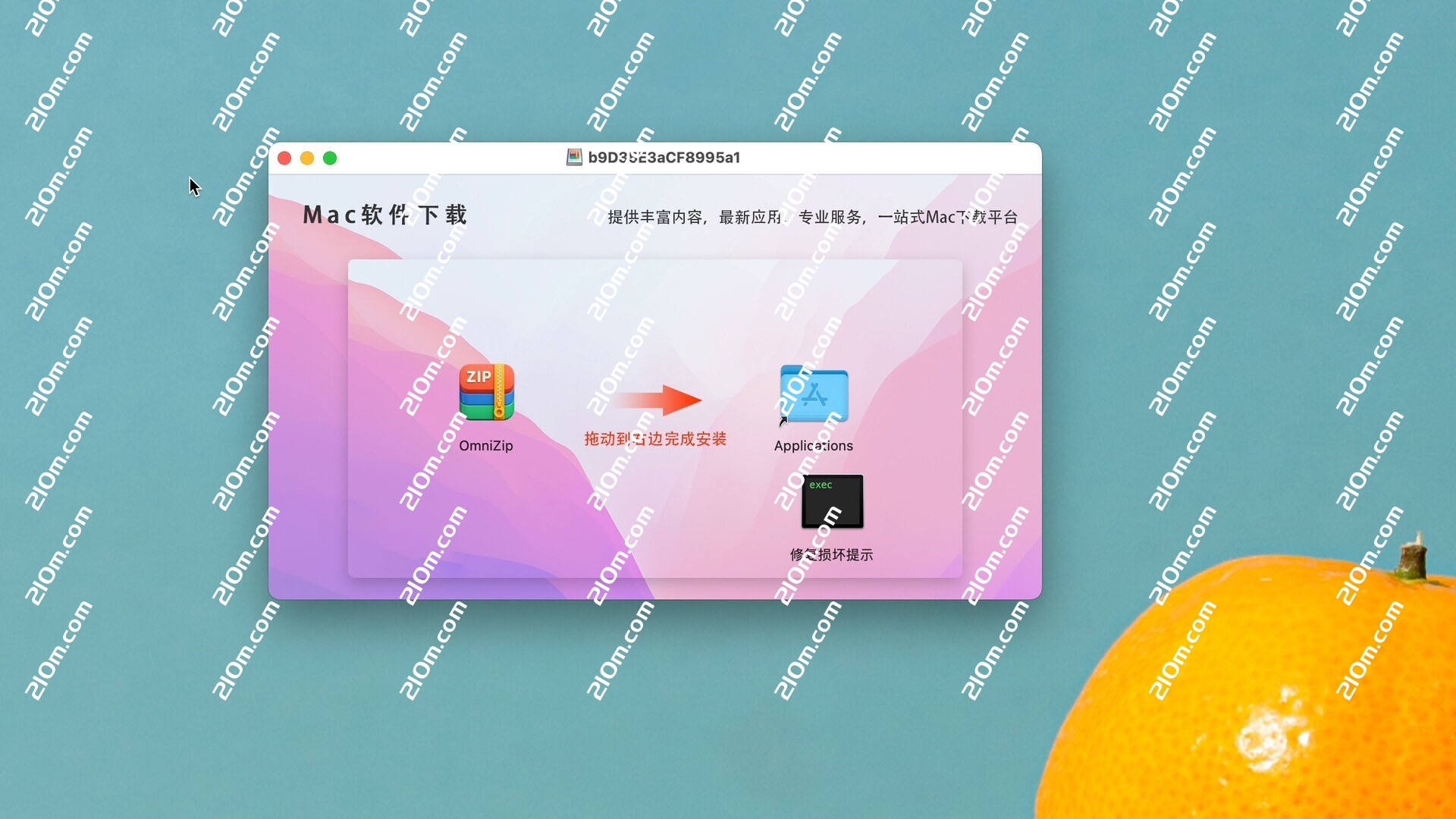 将左侧的OmniZip拖动到右侧的applications中即可
