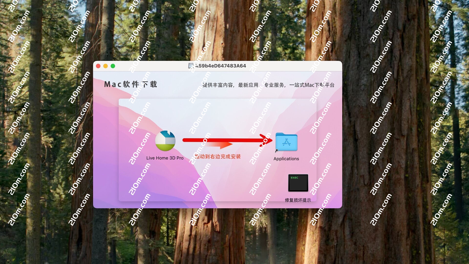 Live Home 3D Pro破解下载,拖动左侧的Live Home 3D Pro到右侧应用程序中即可