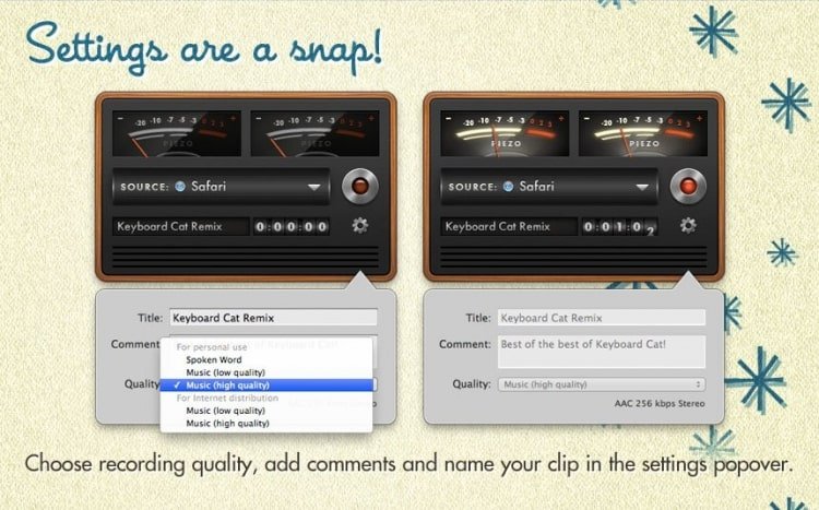 - Piezo几乎可以从Mac上播放的任何应用程序捕获音频。