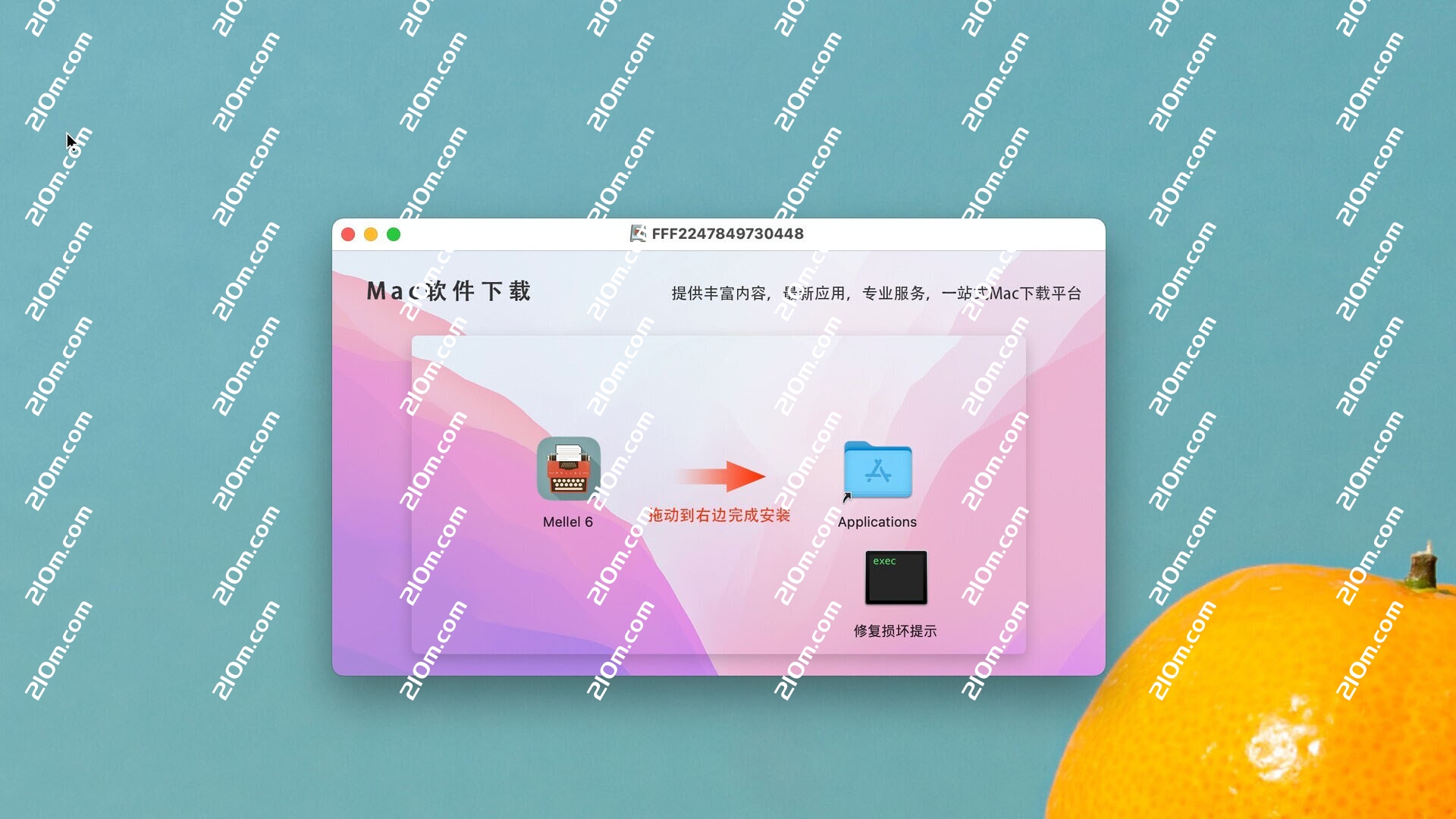 安装包下载完成后,将左侧Mellel 6拖动到右侧的应用程序中,即可完成安装。
