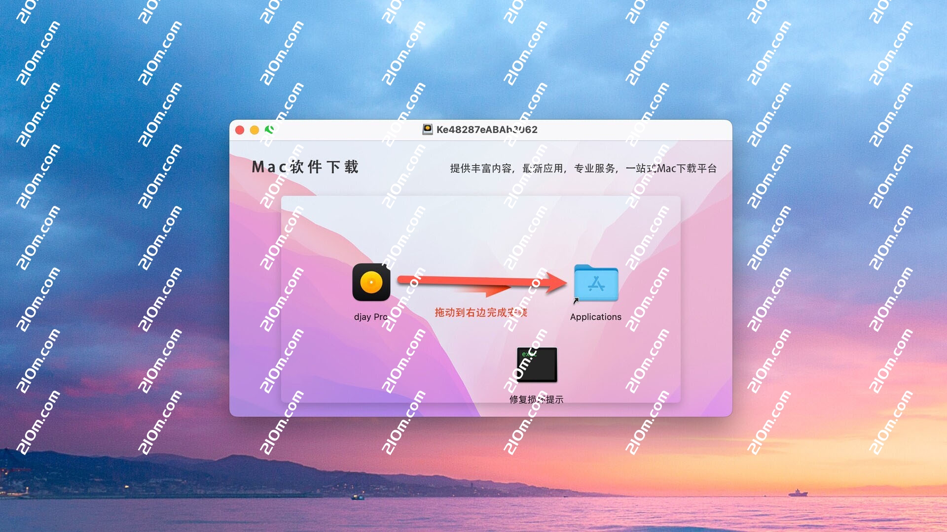 将左侧的djay Pro Ai拖动到右侧的应用程序中,如图