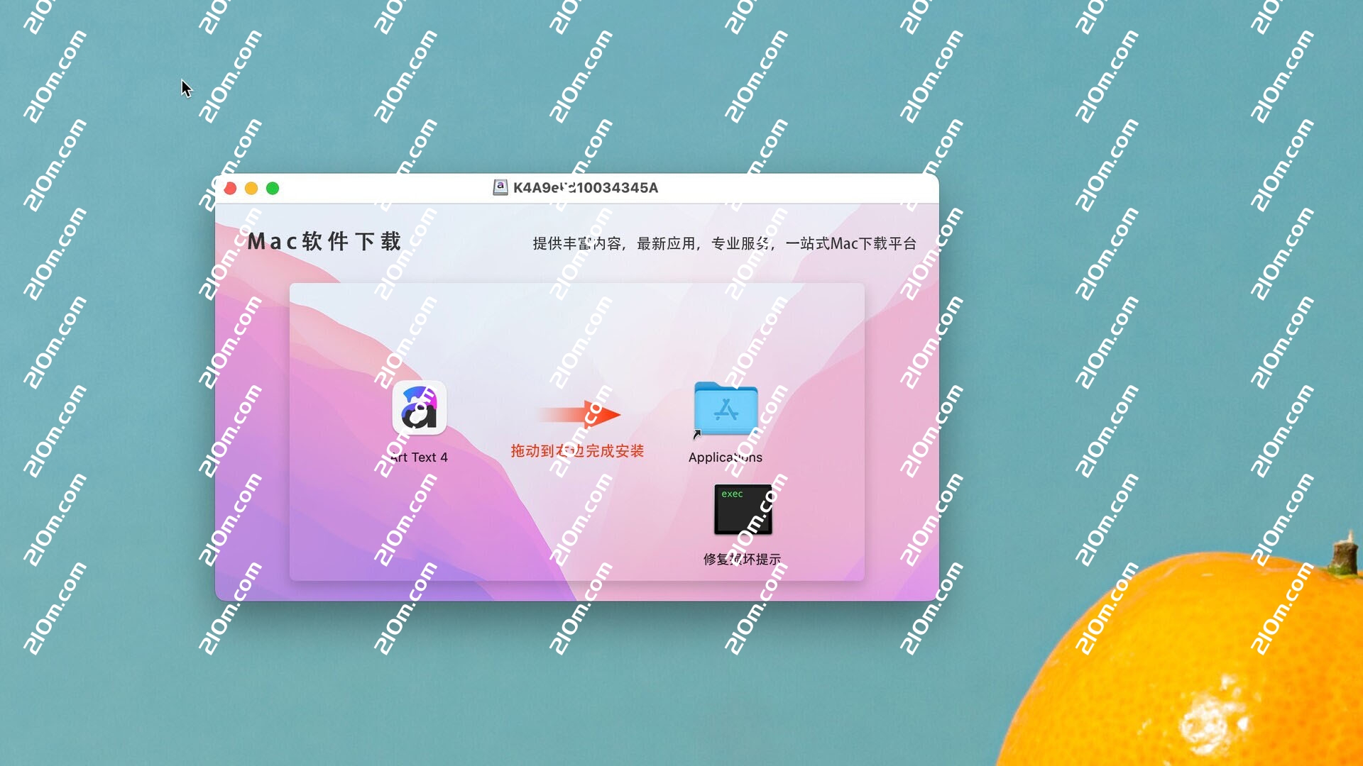 下载完成后打开,将里面的Art Text 4拖动到右侧的应用程序中安装即可