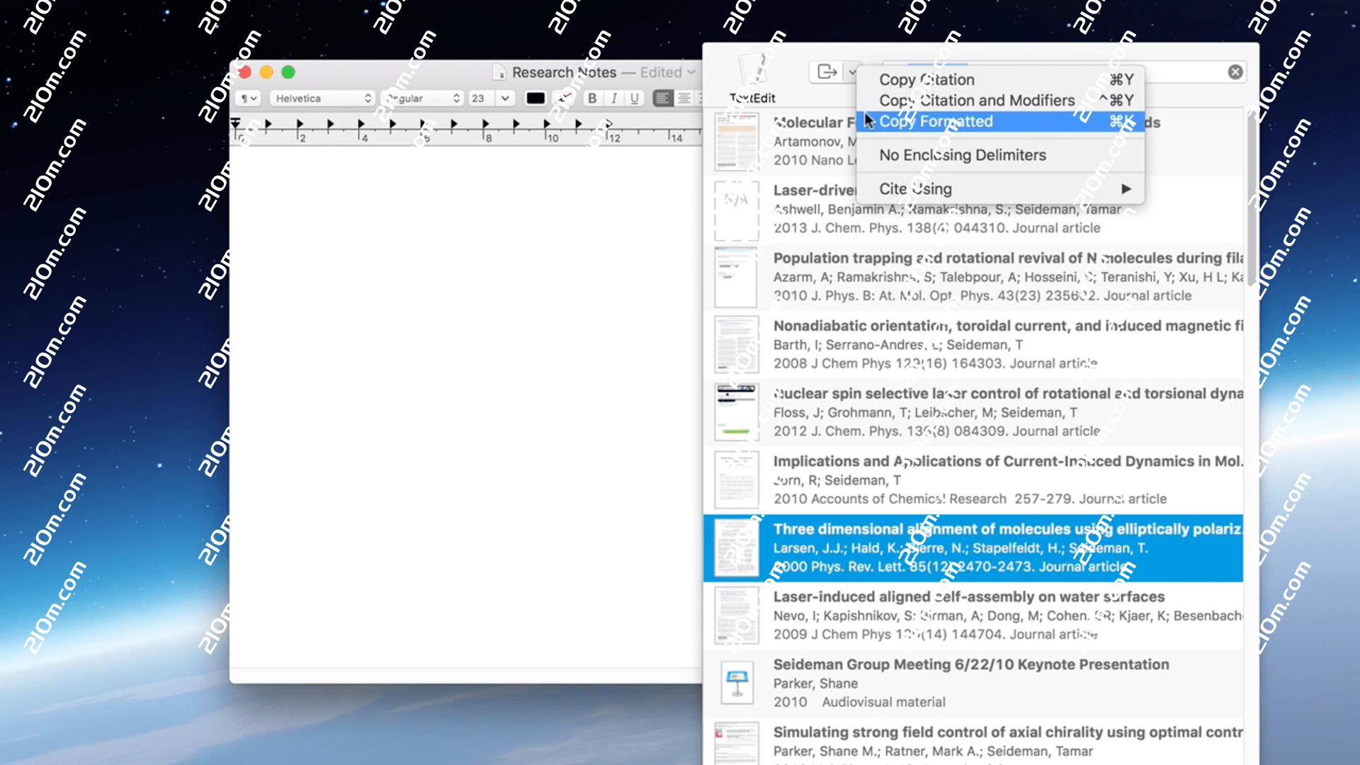 - 快速以适合阅读或导入Mac或PC上的参考管理应用程序的形式通过电子邮件发送参考。