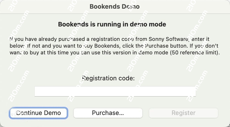 - 安装完成后打开Bookends Mac,弹出注册窗口,把注册窗口放在一旁