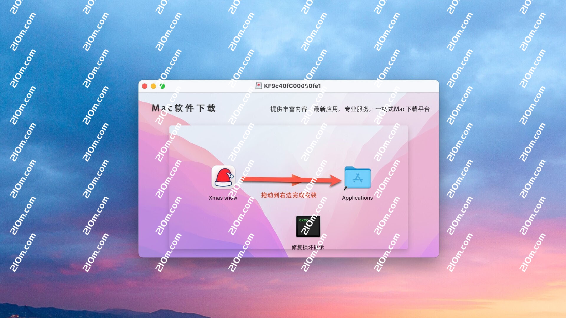 安装包下载完成后,拖动Xmas snow到右侧应用程序中即可。