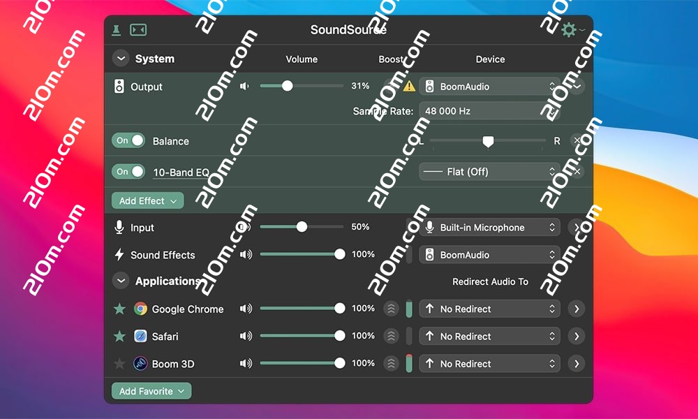 - 如果您使用SoundSource来应用音频效果,您将非常欣赏我们在版本5中所做的增强。初学者将欣赏我们升级的内置效果,新的Magic Boost 2以及更易于使用的10频段均衡器。发烧友会喜欢快速搜索已安装的音频单元的能力,以及对最新音频单元v3规范的支持。