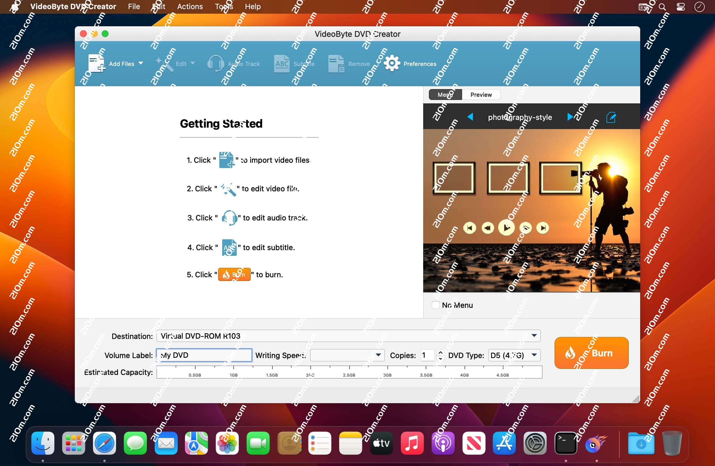 在刻录 DVD 之前,VideoByte DVD Creator 提供多种编辑功能和 DVD 菜单模板,让您能够创建高质量内容并自定义 DVD 菜单,以便查看您想要的任何部分。VideoByte DVD Creator 是一款专业、快速且易于使用的解决方案,可用于备份数据和构建本地收藏。