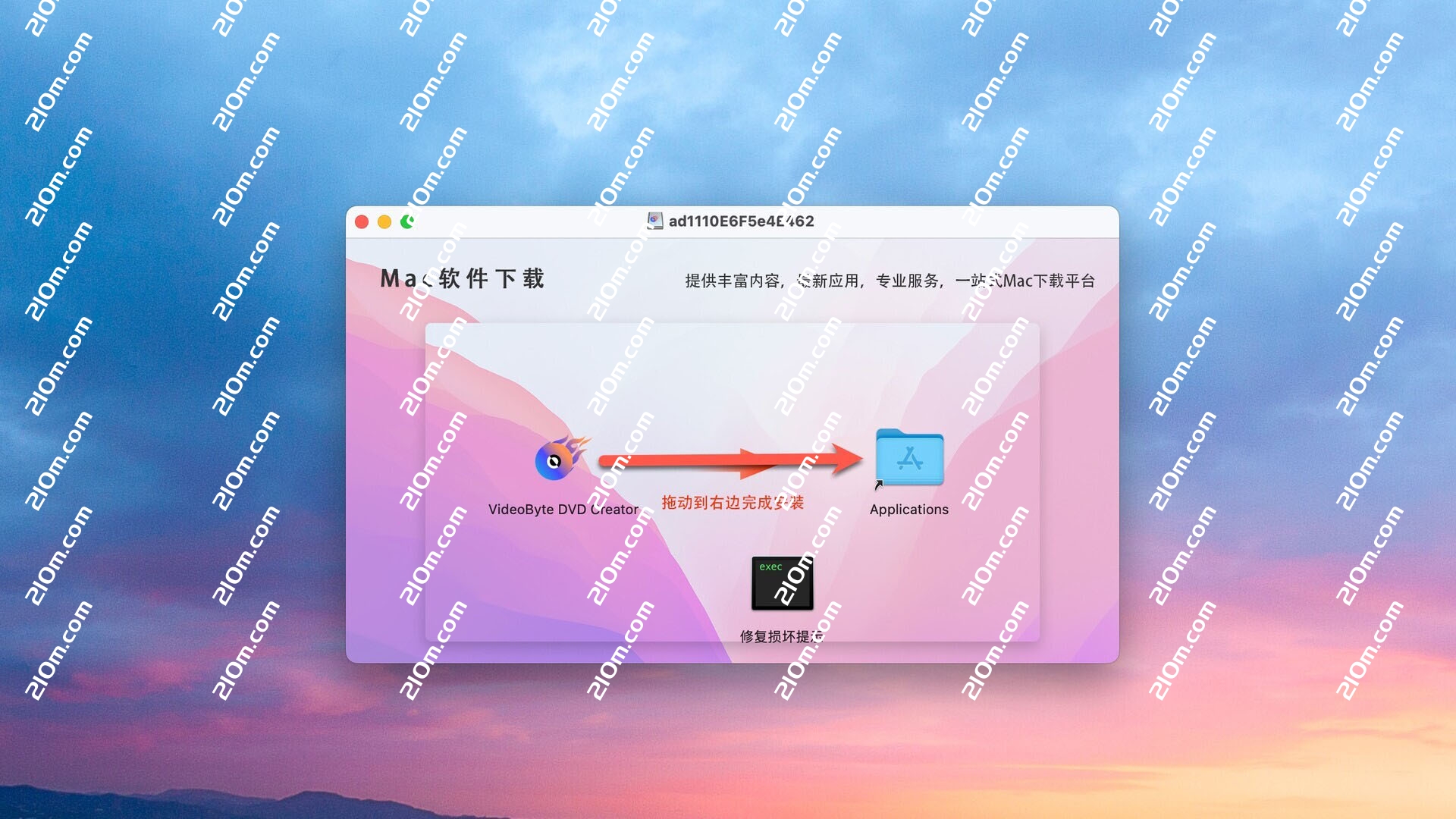 软件安装包下载完成后,拖动左侧的VideoByte DVD Creator到右侧应用程序中安装即可。