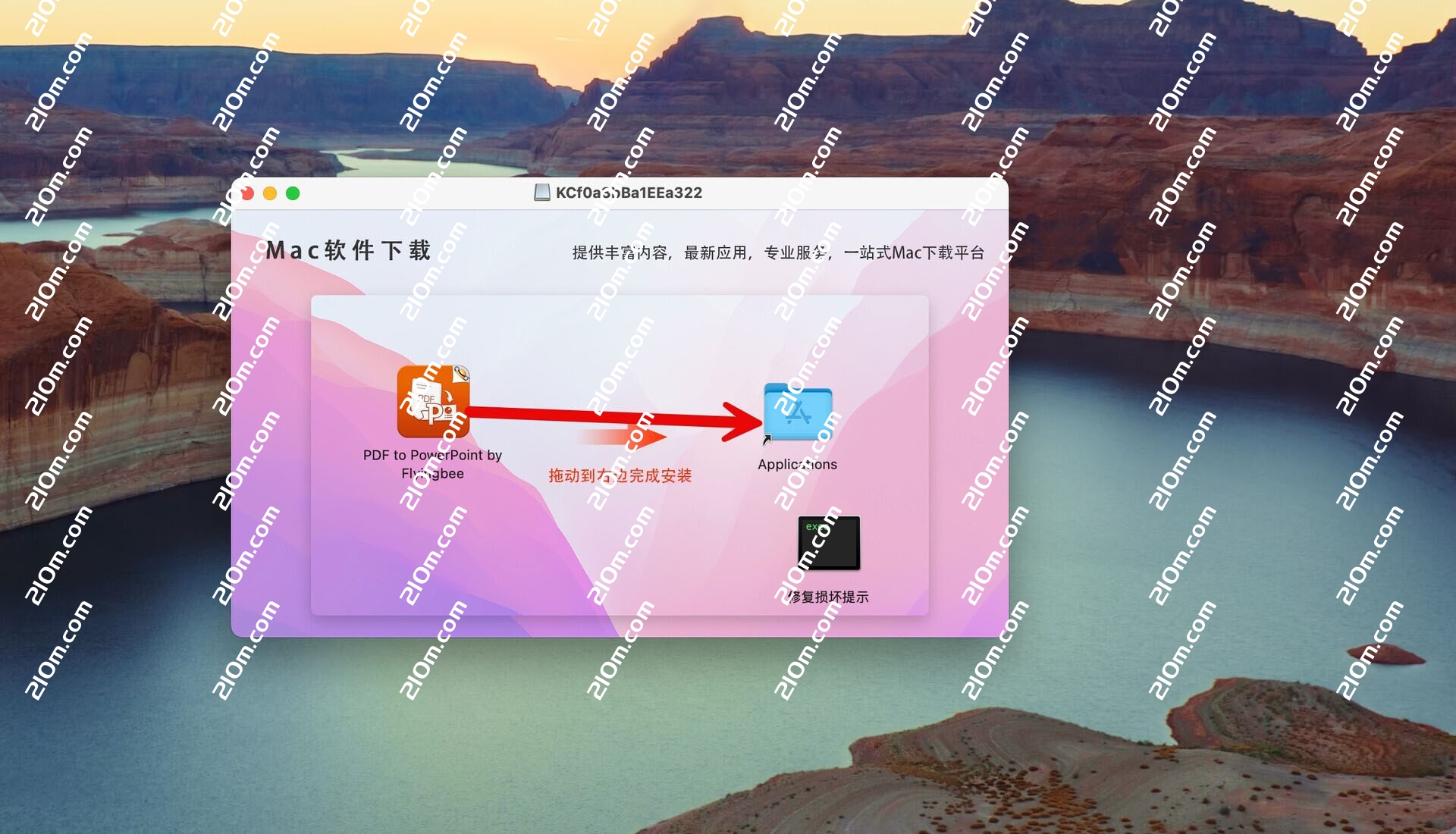 将左侧的Flyingbee PDF to PowerPoint 拖动到右侧的应用程序中即可,如图