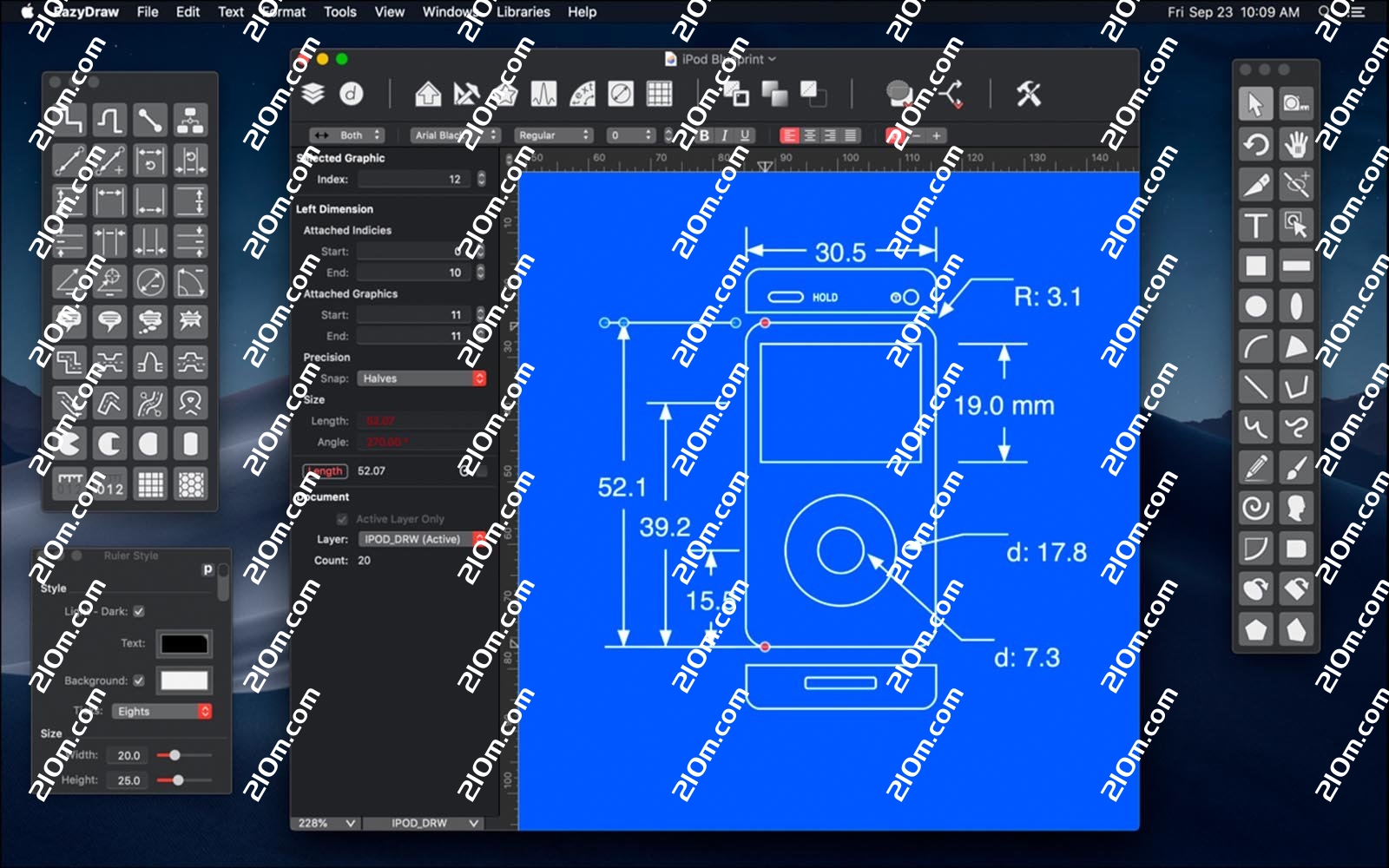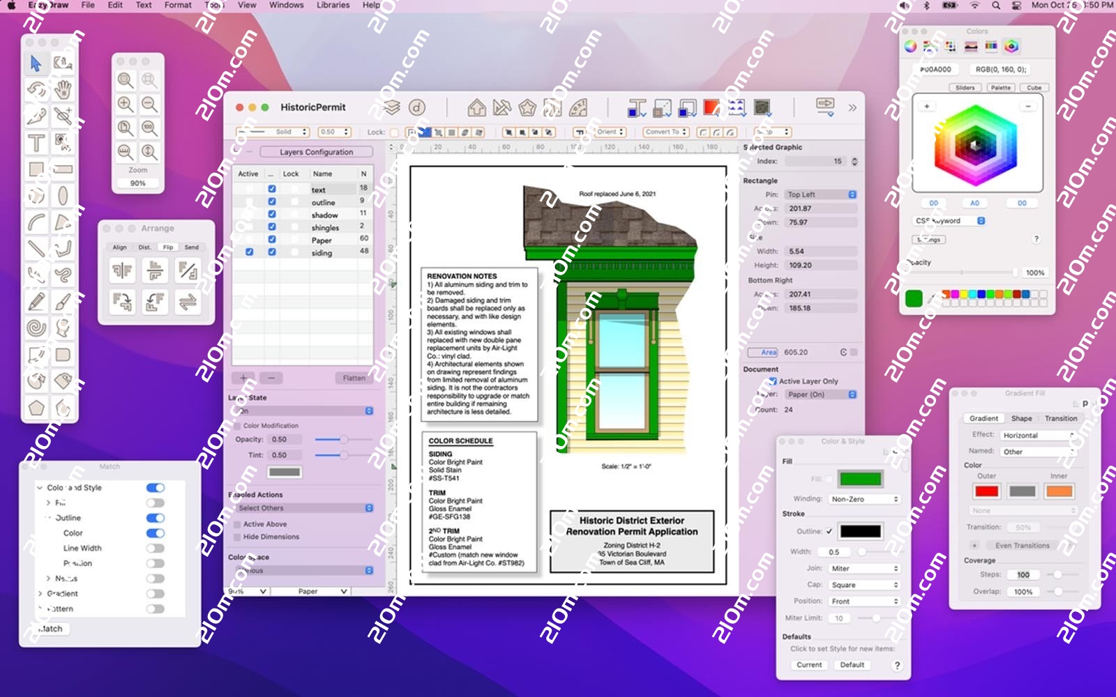 - EazyDraw非常易于配置,可自定义绘图元素,如箭头,渐变和破折号图案。使用用户可配置的快捷键提高工作效率。使用 用户库及其强大的“工具”模式创建自己的绘图工具和自定义工具选项板。