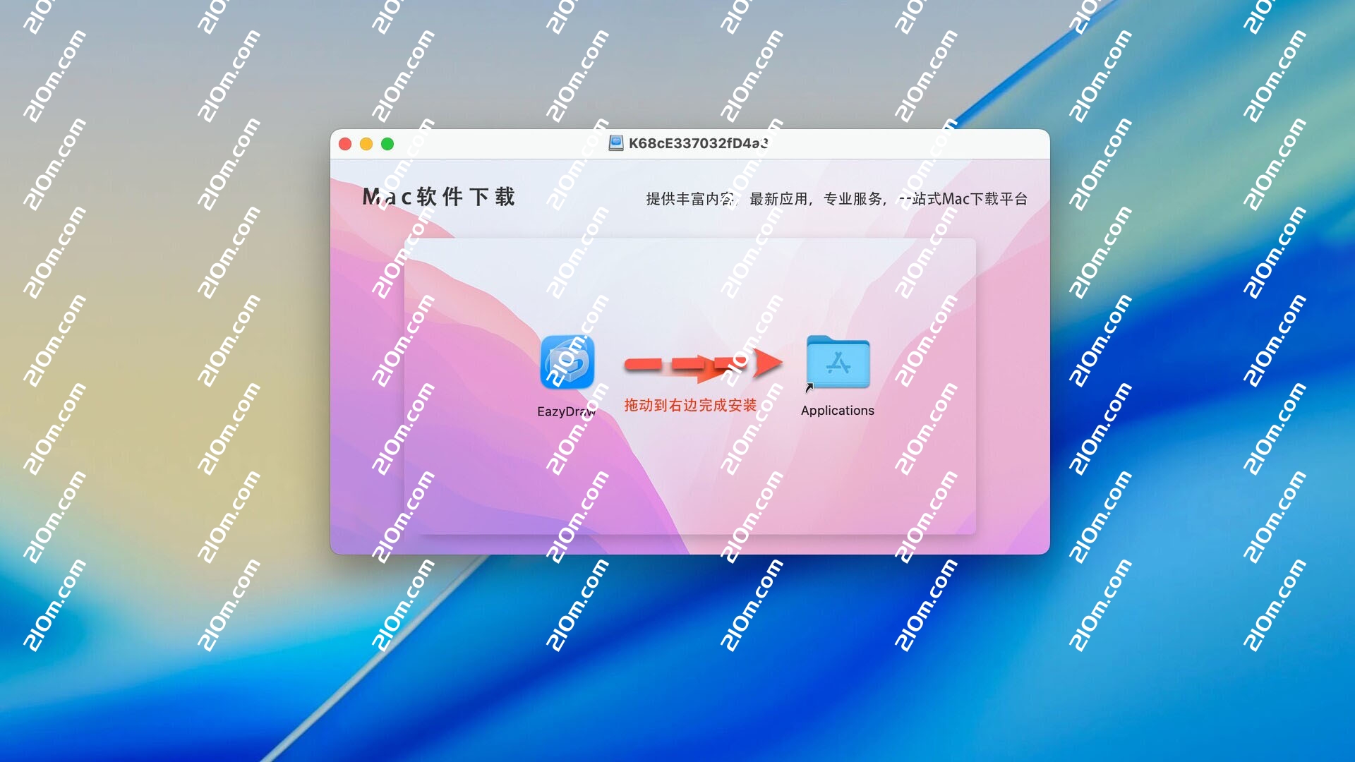 下载完成后,打开安装包,将左侧的软件拖动到右侧应用程序即可。