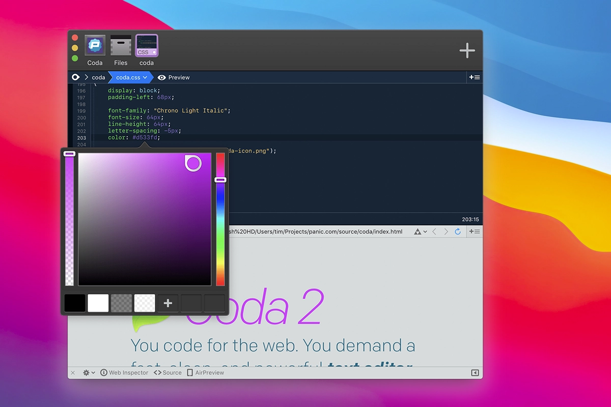 - 在Coda2 Mac破解版的预览中轻松覆盖和编辑网站的CSS,直播。