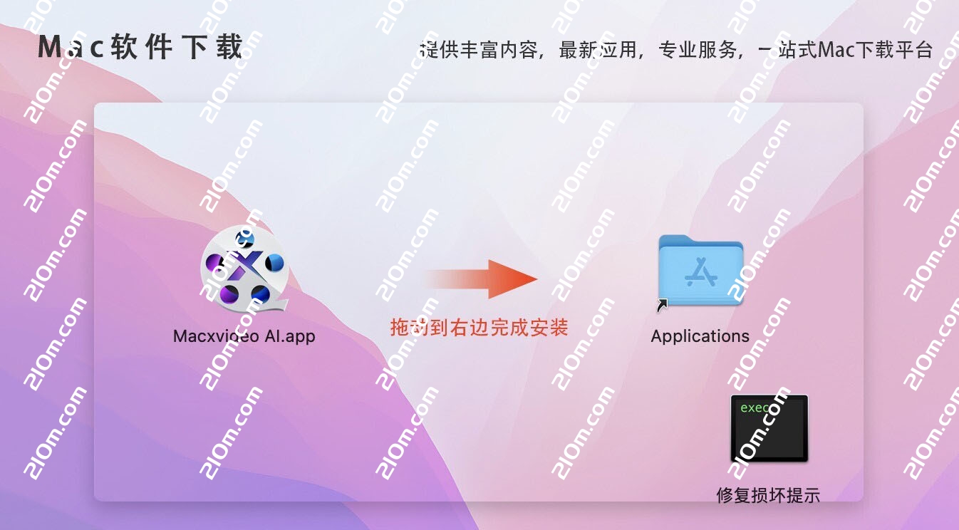 本站下载完成后,将左侧软件拖动到右侧应用程序即可
