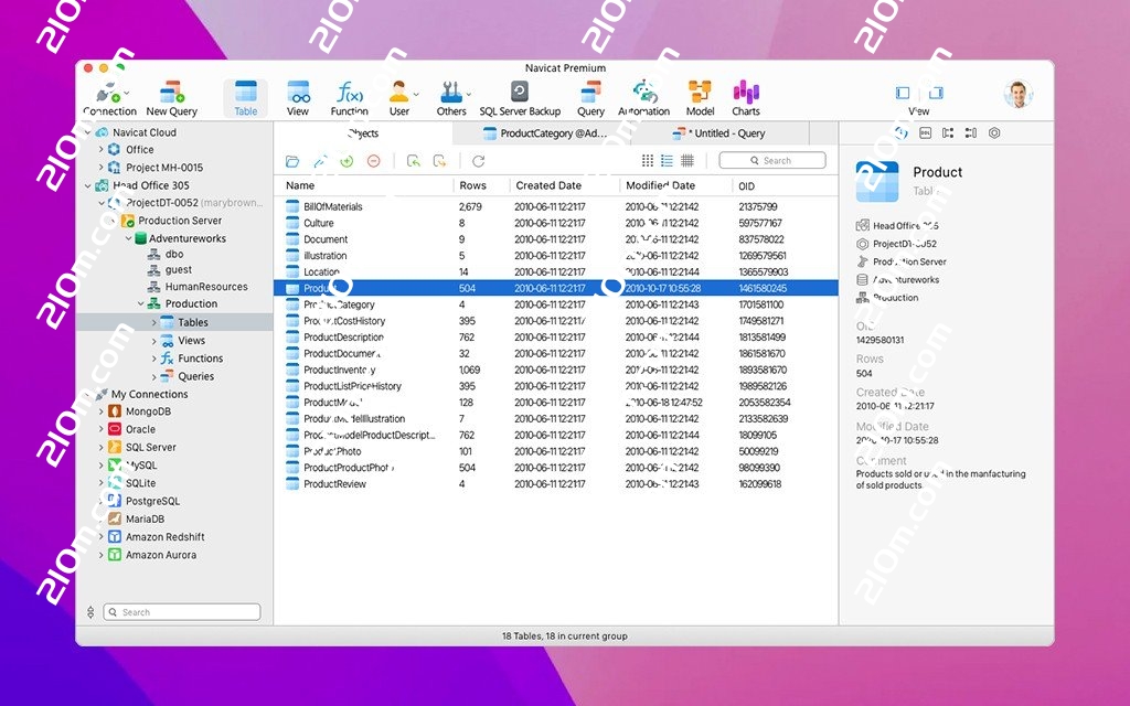 Navicat Premium Mac破解版是一个可多重连接的数据库开发工具,Navicat 的功能足以符合专业开发人员的所有需求,但是对数据库服务器的新手来说又相当容易学习。它可让你以单一程序同時连接到目前世面上所有版本的主流数据库并进行管理和操作,支持的数据库有: MySQL、SQL Server、SQLite、Oracle 及 PostgreSQL。让管理不同类型的数据库更加方便。测试环境:MacOS 13.0