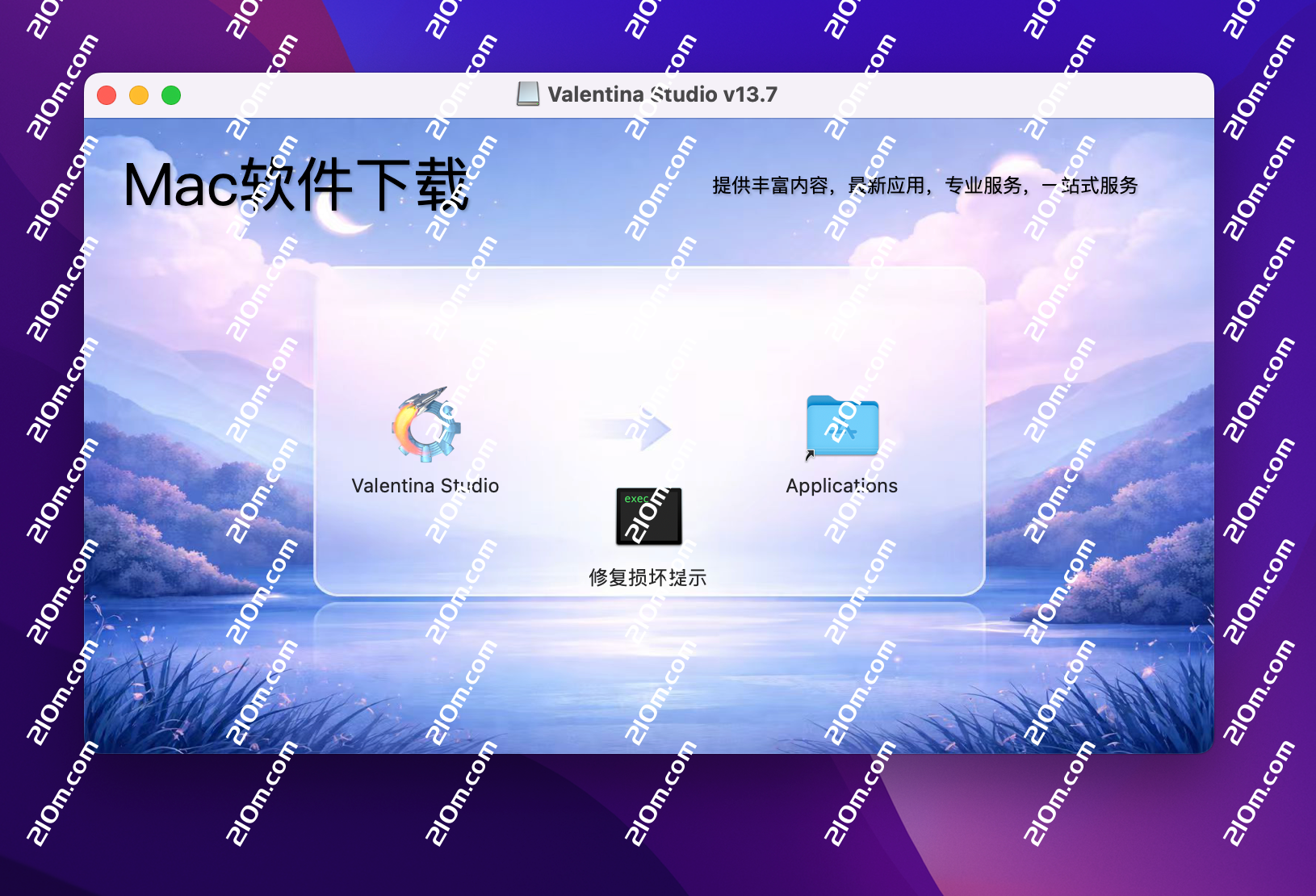 安装包下载完成后,拖动左侧的软件到右侧应用程序中即可