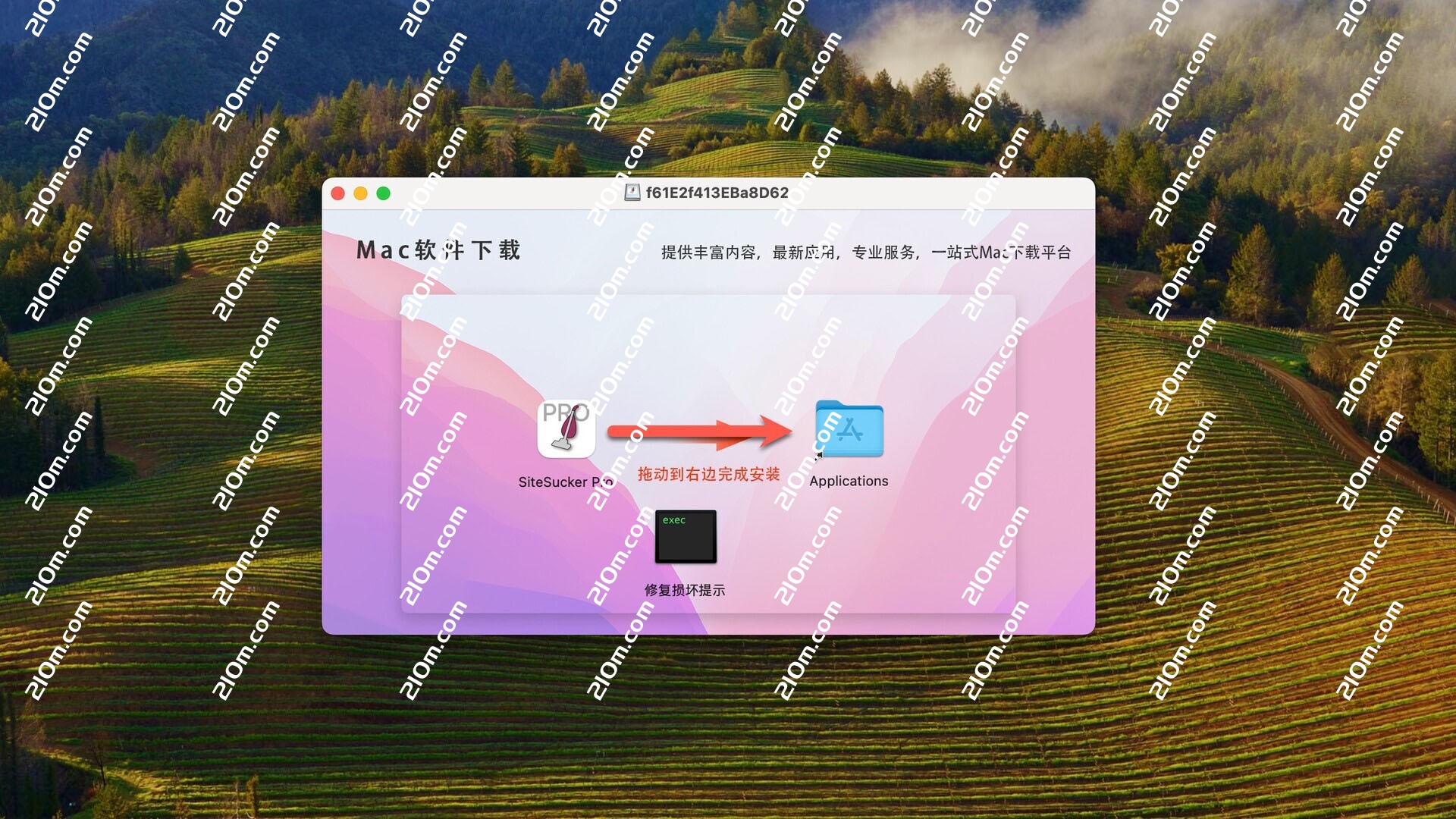 安装包下载完成后,拖动左侧的SiteSucker Pro到右侧应用程序中安装即可。