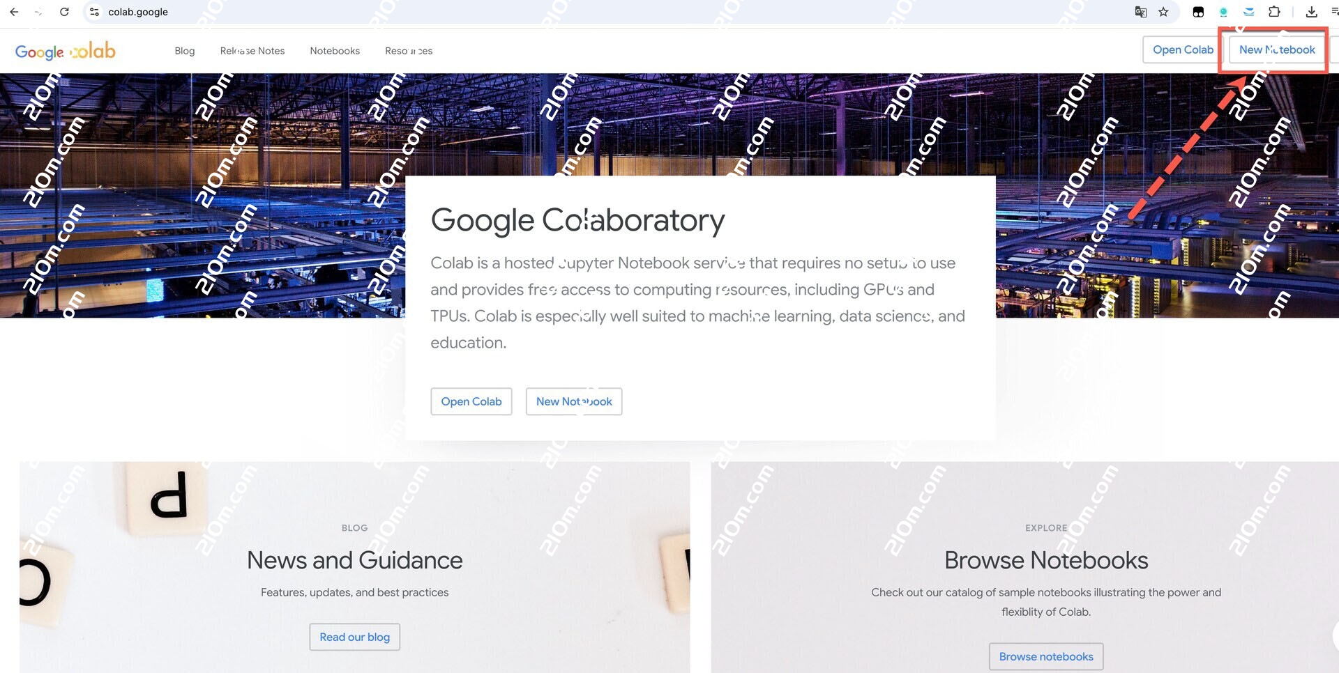 浏览器打开链接 https://colab.google/, 点击菜单,新建文档