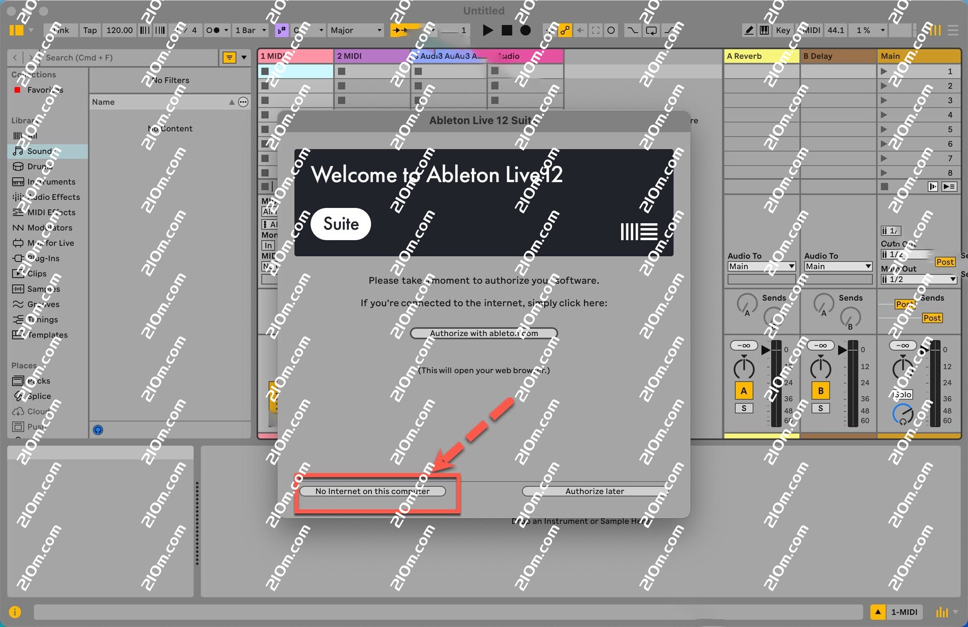 应用程序中打开Ableton Live 12,点击No Internet on this computer