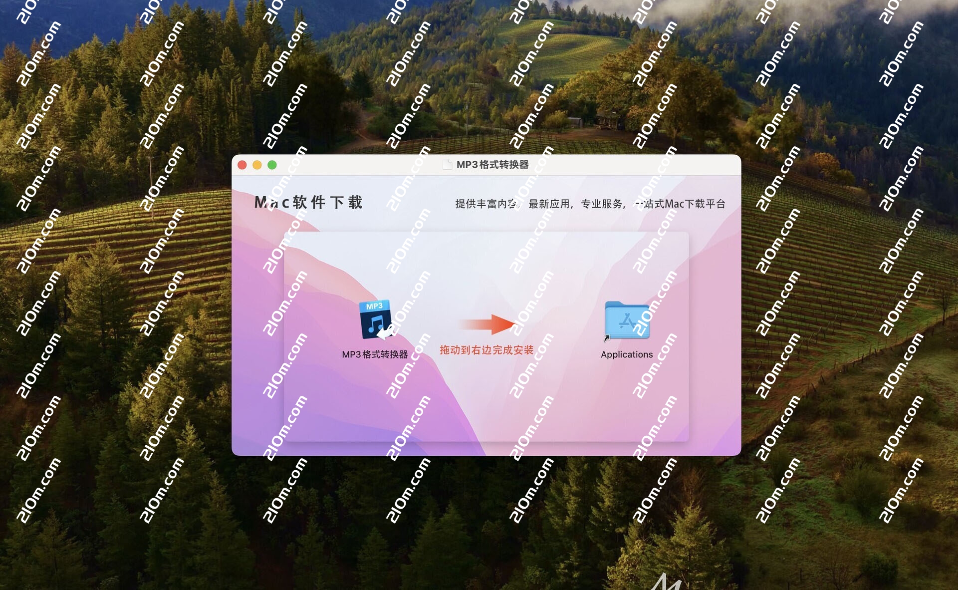 MP3格式转换器下载完成后打开,拖动左侧的软件到右侧应用程序中即可
