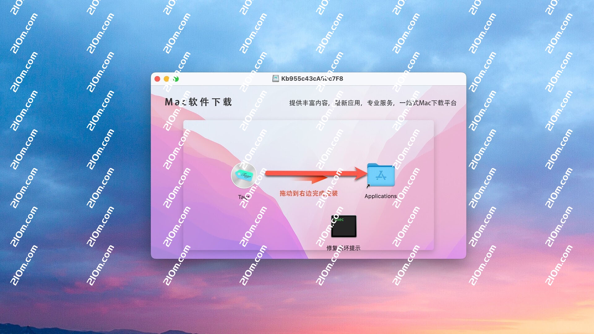 安装包下载完成后,将左侧Tagr拖动到右侧的应用程序中即可